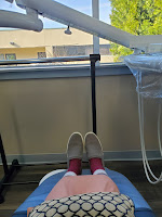 アメリカの歯医者さんでは靴のまま診察台にあがります。